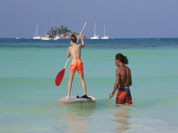 白い珊瑚が砕けてできた、2㎞に及ぶ美しいホワイトサンドビーチが魅力のパラダイスサン。世界で最も美しいビーチの1つとも名高い、「アンス・ラジオ」ビーチまでも、約6㎞(車で15分程)でアクセスが可能です。