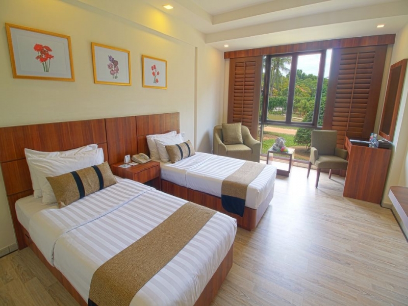 ニルワナガーデンズ内に位置する大型リゾートホテル。明るい色調の客室には藤の家具が配され、さわやかな印象。子供用のプレイルームやキッズクラブもありファミリー客には嬉しい。敷地内にはカラオケラウンジや水上レストランなど6つの飲食店があるほか、宿泊客はマヤンサリ・ビーチリゾートの飲食施設も利用できる。