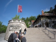 スリル満点のトロッコ乗車を終え、ようやくメインの徒歩ツアーのスタートです。スタート地点で言語によって分かれます。ドイツ語、イタリア語、スロベニア語、英語・・・私は日本語しかわからないのでとりあえず英語に並びます。選択肢ないし。そして徒歩でガイドと一緒にまわっていきます。