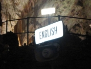 入り口でチケットを購入します。20ユーロって、高っ!!鍾乳洞で2000円以上も取るのかーとちょっと心の中でブーイング。ここからトロッコ電車の入り口まで行くんですけど、入り口に怪しい案内が・・・上着貸し出し3ユーロ、中は8℃・・・結構寒いのね。そして入り口にはものすごい人が集まってきました。一体トロッコ電車ってなに???