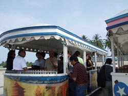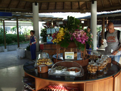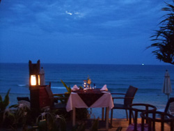 夜はディナーを食べにサムイ島で一番賑わう「チャウエンエリア」へ!フォーシーズンは島の西側の端に位置しているのですが、反対側のチャウエンまでも車で30分から40分程で行けます。チャウエンは島で一番人気のビーチエリアです。ビーチも粒子の細かい白砂でとーってもキレイキレイ♪&遠浅なのが特徴です。このエリアにサムイ島の主要なホテルがかなりの数で点在しています。デラックスリゾートからスタンダードリゾートまで選択肢は豊富にあるので、お客様のご予算などに合わせた形でリゾート選びができますよ!チャウエンエリアには飲み食いできるお店や雑貨屋さん、服屋、お土産屋などがたくさんあり、夜遅くまで多くの人で賑わっているので、チャウエンエリアから離れた場所のリゾートに滞在する場合でも、滞在中に一度は是非、押さえておきたい場所の一つですね♪ 左の写真はディナーをしたポピーズサムイというリゾート内にあるレストランでオン・ザ・ビーチで開放感と爽快感を同時に味わいながらご飯を食べれる雰囲気抜群のレストランです。料理もおいすぃーーー♪島の移動に関してはソンテオという、島で一番手頃な交通機関を使うかメータータクシーのどちらかを利用することになりますが、料金はソンテオの方が安いです。チャウエン内での移動でソンテオを使用する場合は10バーツ(1バーツ=3.3円~3.5円)~20バーツほどで移動できますが夜間の18時以降の時間帯は料金が割増になるのでご注意下さい!メータータクシーは運転手との交渉制なのでボッタクリにはくれぐれも気をつけてください!メーターはありますが殆どの運転手がメーターを使用していないので乗車前での交渉が必須です!