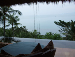 到着初日に泊まったリゾートは何とあの世界の名門・・・フォーシーズンです!!去年、満を持してOPENした「フォーシーズンリゾート コ サムイ」は現在、サムイ島内で一番、値の張るリゾートです。敷地内が広いのでカートを使っての移動になり、お部屋のタイプは全てヴィラタイプという豪華さ!泊まったお部屋はワンベッドルームというお部屋タイプだったのですが、お部屋の前にはかなり広めのプールがあり、部屋から海を一望できる絶景が♪耳より情報ですが・・・カップルやハネムーナーのお客様にはハート形プールのお部屋を用意してくれるそうですよ。※確約ではないですが。愛が深まりますね♪リゾートの敷地自体が傾斜をうまく利用して作られていて、敷地内の頂上に 写真左上のレセプションがあり宿泊するヴィラが下に広がっています。個人的には部屋から海が見える景色よりも、レセプションからの景色の方が好きです!360度見渡せるような壮大なスケールの眺望には一瞬、時間が止まったような感覚になってしまう程、素晴らしいの一言に尽きます!さらにさらにリゾートがほぼ独占しているビーチも、とーーっても魅力です。タイにはプライベートビーチという概念がないのですがフォーシーズンはリゾートの造りの特性上、周りから宿泊客以外が入ってこれないのでプライベートビーチといっても過言ではありません。宿泊客以外にビーチに来れる唯一の方法としては、対岸から船でやってくるしかありませんね(笑)なのでどの場所でもプライベート感覚を保ちながら気持ちよーーく滞在できます♪