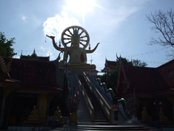 リゾートの写真と打って変わってサムイ島でも有数の観光名所といえば上の写真のビックブッタ寺院です!寺院にまつられている高さ12メートルの巨大な黄金色のビッグブッタはやさしく微笑みかけているようにも見えます・・・か?参拝もしくは見学の際には、服装にご注意を!水着やノースリーブの服は厳禁で極力、袖のある服を着用するのがマナーみたいです。参拝時には階段を登る前に靴を脱いで、裸足になって階段を上がるのがルールになっています。(これ僕もやりましたが地面が熱波で暑くなり過ぎでやばいです・・・ほんとに他の人達はやってるのでしょうか・・・)