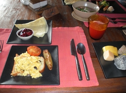 写真1:私の朝食。洋食に偏りすぎました、、、もったいないことをしたと後悔。
