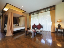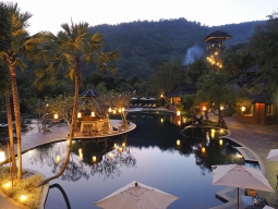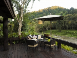 チェンマイ空港からさらに車で1時間と人里離れた「シプサン リゾート&スパ マエタン」は象とふれあうことができるメーテンエレファントパーク、メーテンエレファントキャンプがそばにあることで有名な地域です。象に乗ってお散歩するコースはこのリゾート裏手のメーテン川も下ります。メーテン川、洞窟、滝と自然あふれる景色を堪能できる地域は身体も心もやすらぎます。また野生動物が数多くいるシーランナ国立公園も有名です。