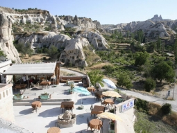 ホテルは坂の上に位置しており、テラスからは鳩の谷やウチヒサールなどを眺めることができることができます。