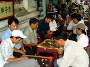 (写真:右) 通りで麻雀に熱中する大人達 生活の一端を伺えます