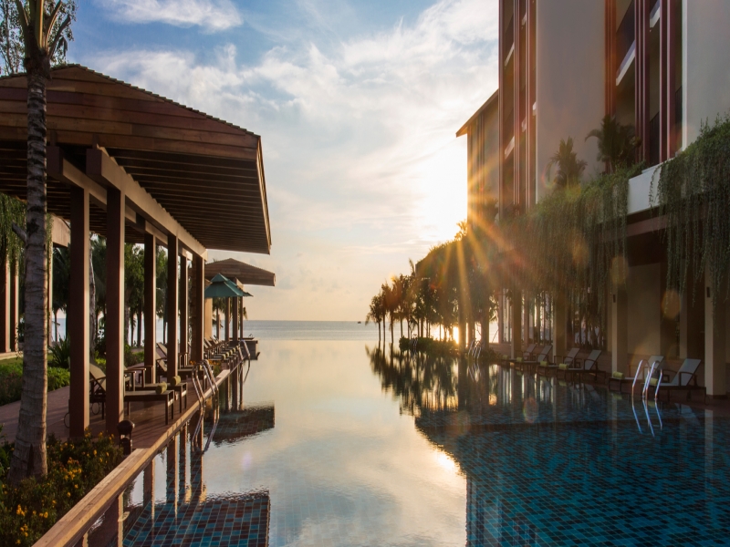 空港から約10分、街まで約10分の便利なロケーション!フーコック島の美しい西海岸ビーチ沿いに位置するサンセットが美しいリゾートです。客室数は全108室で海外からのグループ旅行のお客様は少なく、個人旅行のお客様の居心地の良さやホスピタリティの良さが魅力です。