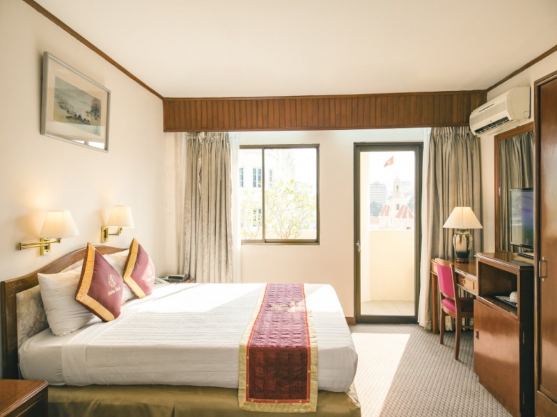 場所はドンコイ通りに面しており、近くには雑貨屋さんやレストランがいくつかございます。お部屋は他のスタンダードより若干狭めですが、滞在には問題ございません。