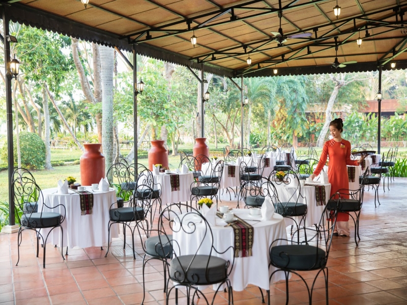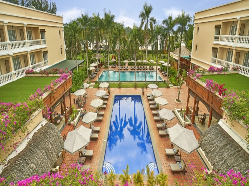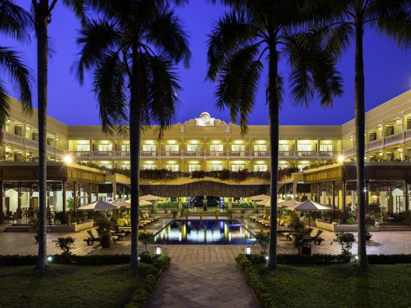 1930年代のフレンチコロニアル様式の建物を利用して作られたこのホテルは、客室へ向かう階段のてすりや、廊下のタイル模様、壁に飾られた絵画など、ちょっとしたところにも、植民地時代のフランスの趣を感じることができるホテルです。また、スイミングプールや花々が咲きみだれるガーデンなど、リゾート的なエッセンスが加えられている分、ホーチミンやハノイのコロニアルスタイルのホテルとは又違った雰囲気を楽しむことができるでしょう。