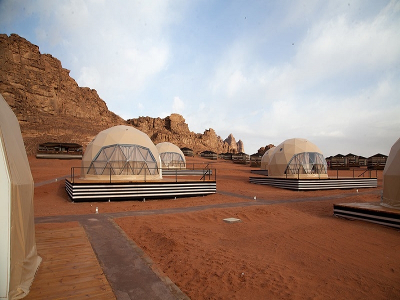 まるで別の惑星に迷い込んだような、今話題のバブルテントがシンボルのキャンプです。 日本では決して味わうことのできない、不思議な体験ができます。 砂漠だけでなく、キャンプ地の背景にはSF映画のような山の地形に囲まれていたり、ジープツアーやキャメルライドといったアクティビティも用意されています。